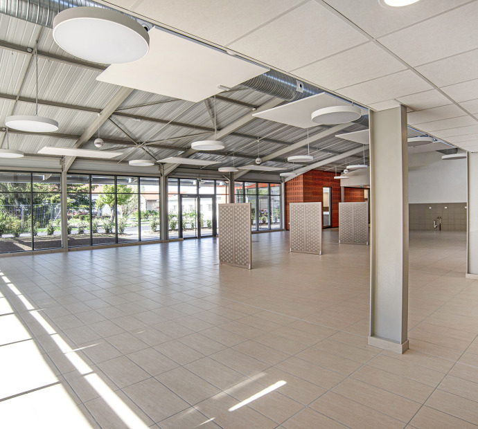 - L’organisation fonctionnelle rassemble une unité de production de 1200 repas par jour et une salle de 350 couverts