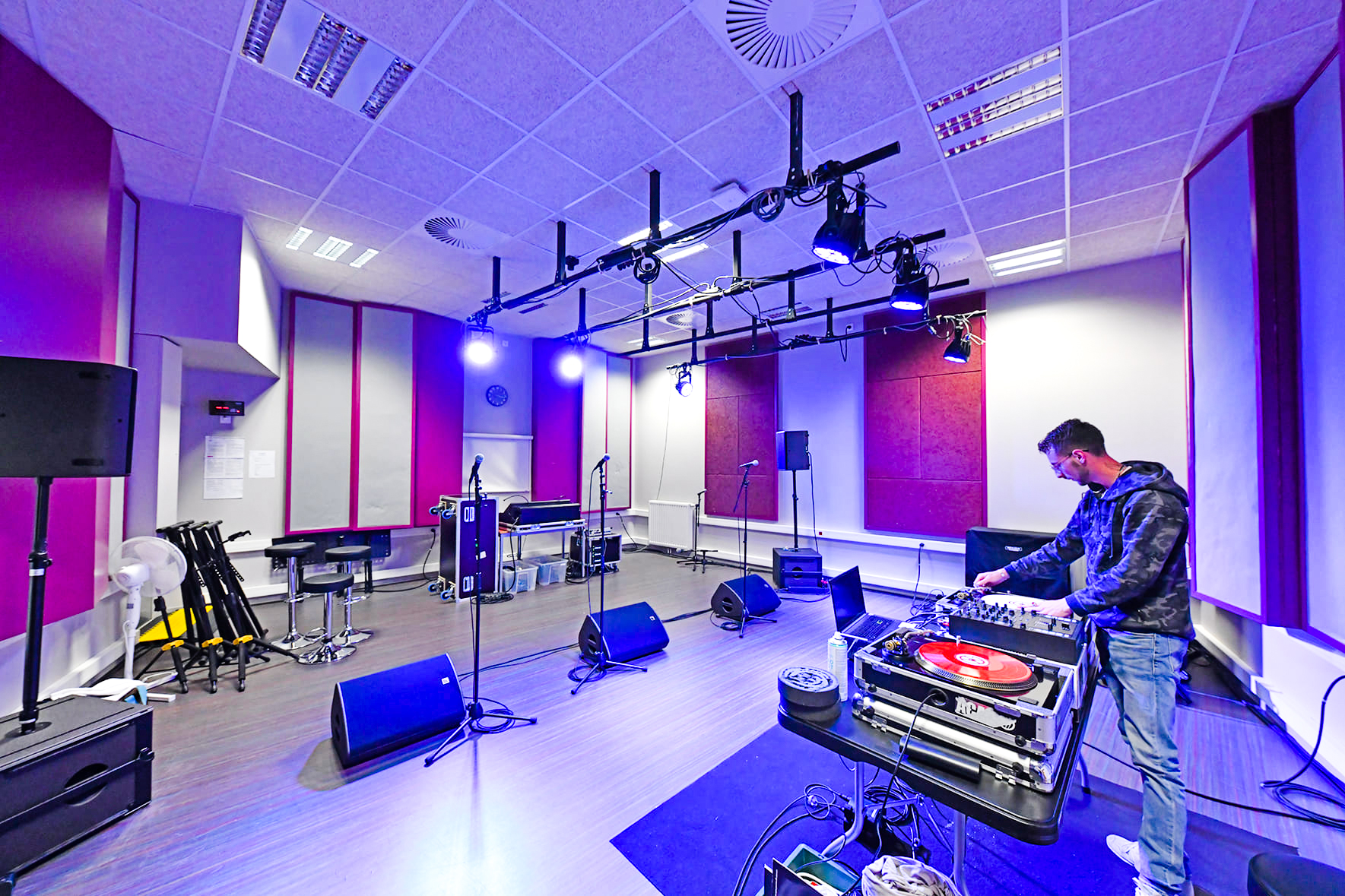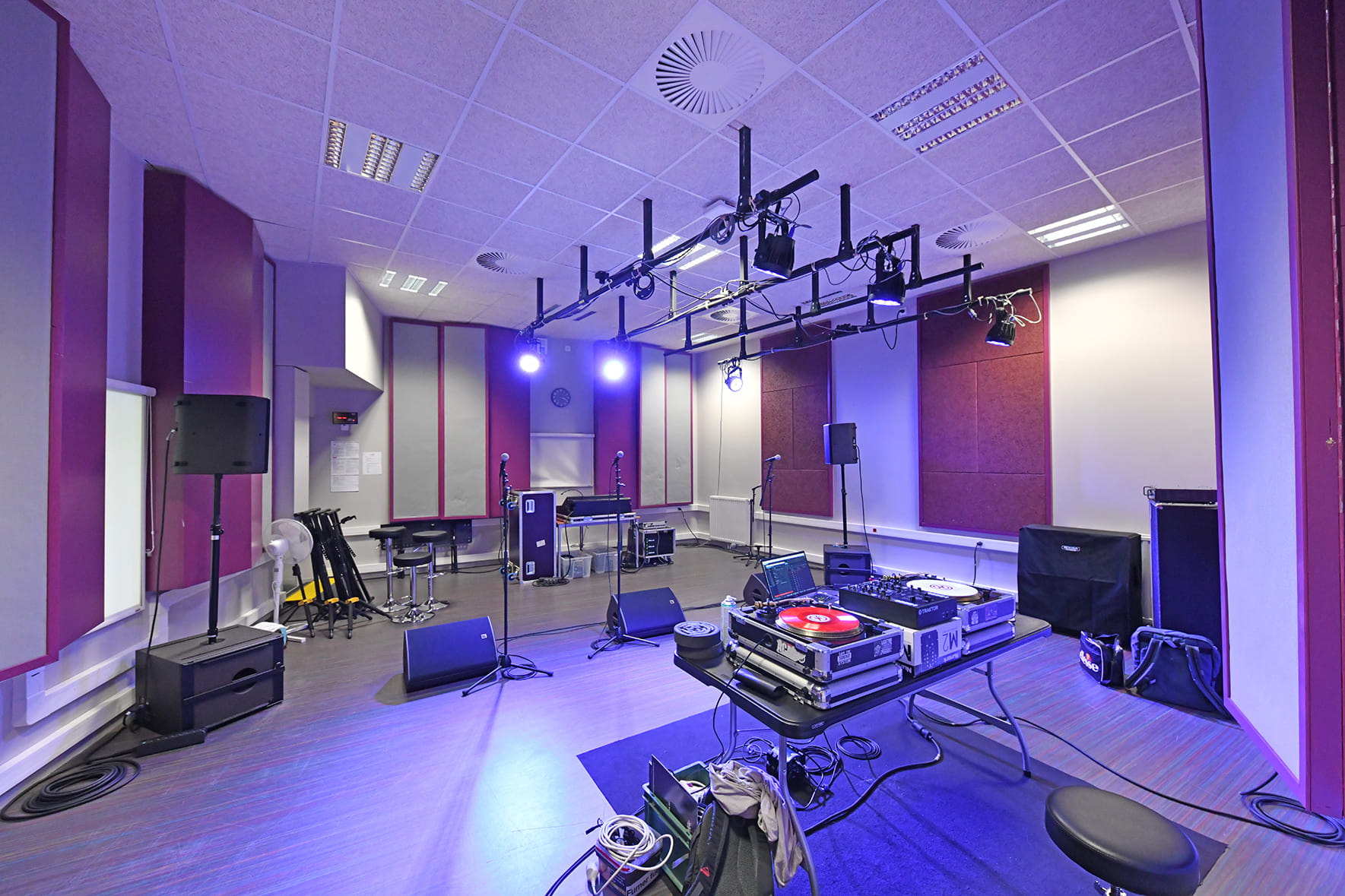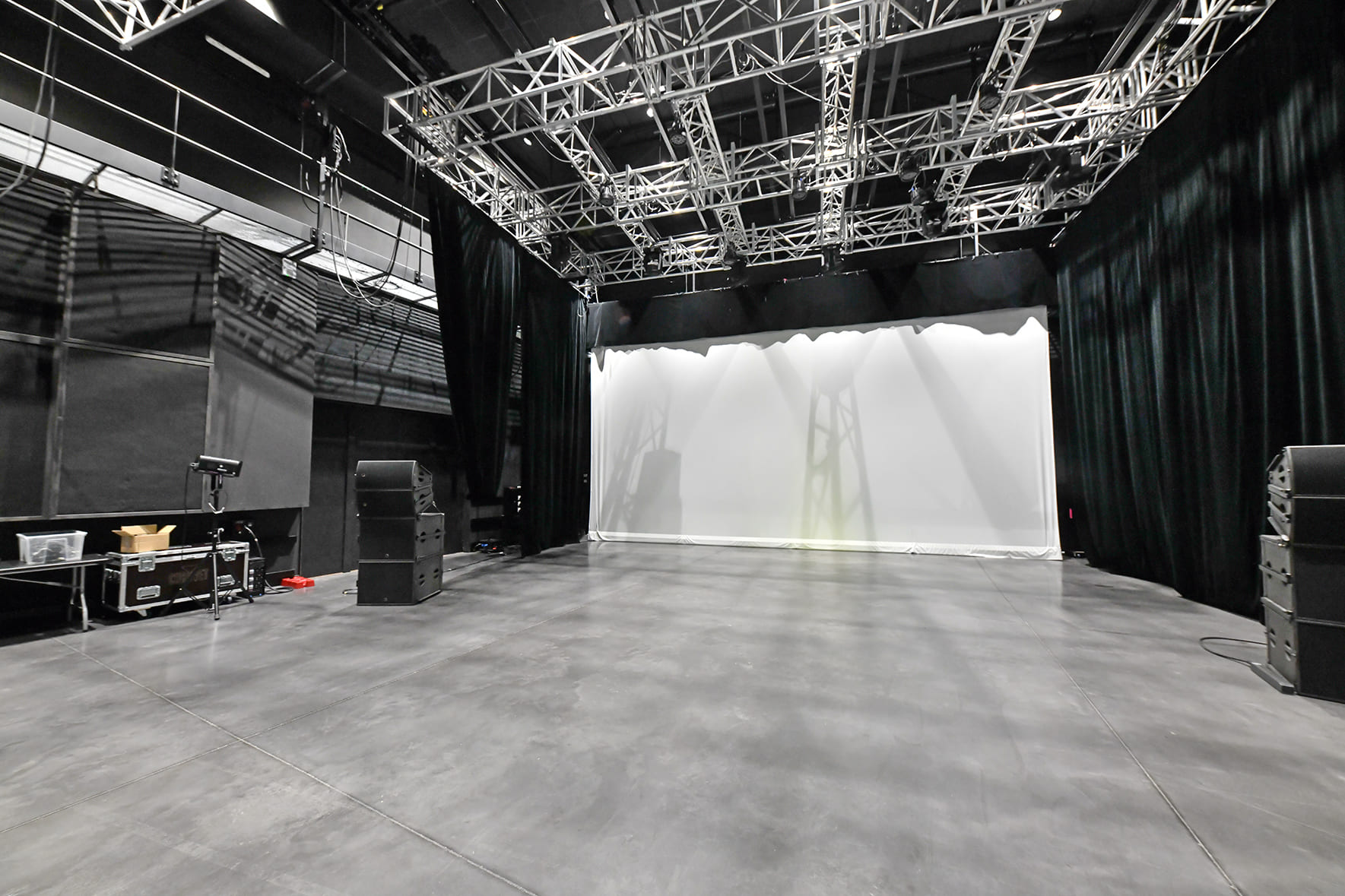 • L’équipement comprend un studio principal polyvalent de 150 m², pouvant servir indifféremment de plateau de tournage ou de scène de spectacle