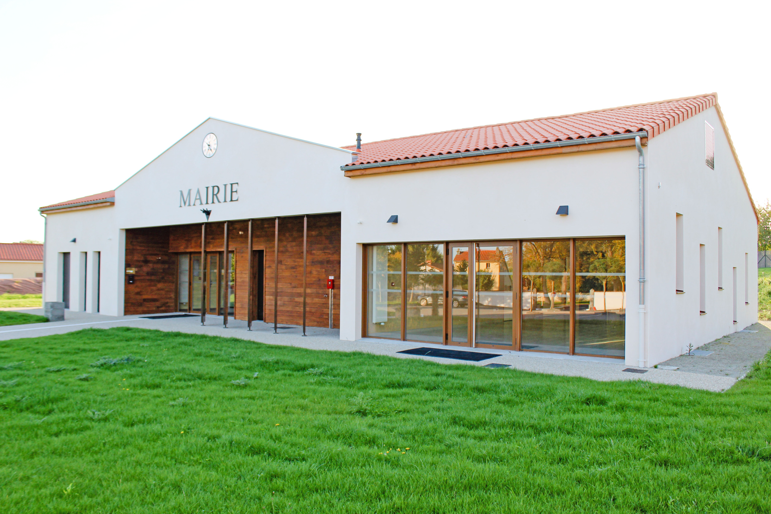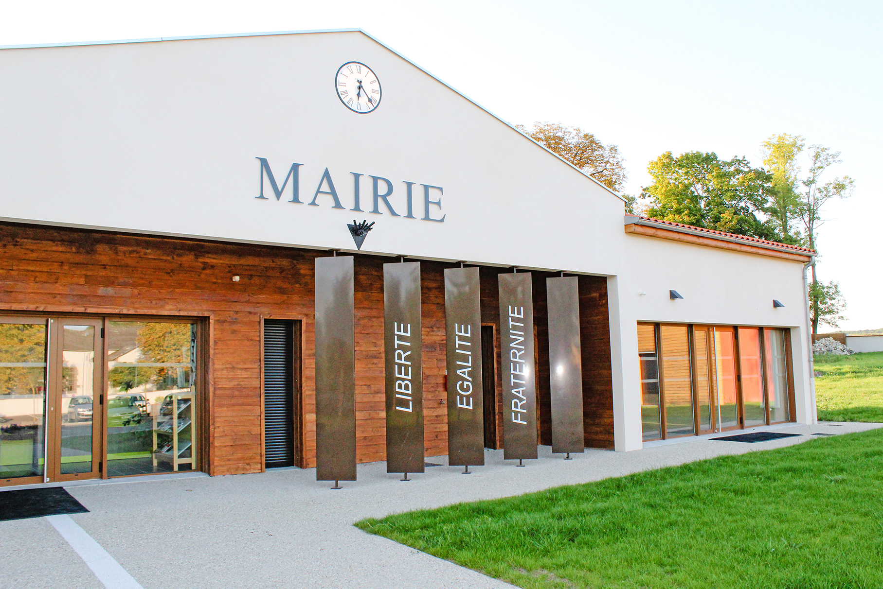 • La présence du bois en façade apporte une touche de chaleur pour l’accès à la mairie